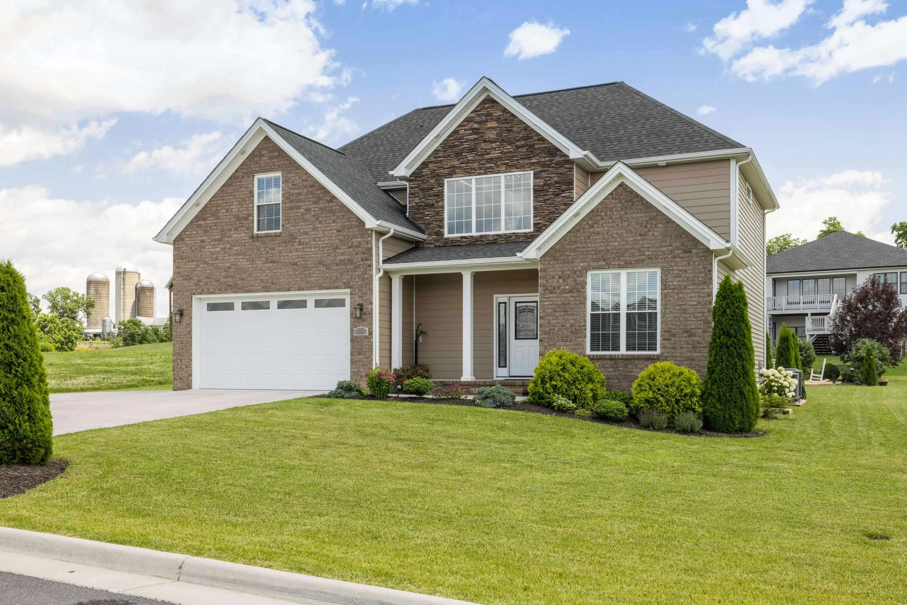 This stunning, like-new home boasts a bright and airy open floor plan. It features a clean and meticulously maintained two-story layout with an oversized two-car garage. Enjoy the welcoming front porch, the 14' x 20' deck, 13' x 14' patio, and a cozy fire pit. The interior features a stunning 2-story foyer, a living room with an electric fireplace complemented by stone, built-in cabinets, shelves, and an accent wall. The home includes four bedrooms and a home office. The primary bedroom features a luxury bath w/ a spacious tile shower and a free-standing tub. The gorgeous kitchen showcases white cabinets, stainless steel appliances, a tile backsplash, and elegant granite countertops. While having beautiful mountain views, this property is also conveniently located near a park with walking trails, and is close to all Bridgewater amenities.