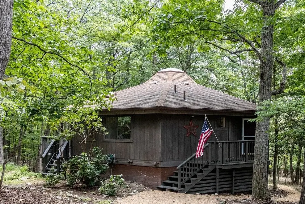 The Wood Stove House—your chance to enjoy a unique, hexagonal home in the woods. This one-owner, custom-designed lodge features walls of south- and east-facing patio doors and wide windows. The six-foot sky dome provides natural daylight and moonlight, along with open, airy, vaulted ceilings. The spacious great room connects smartly with the efficiently designed kitchen, keeping the chef in the conversation. Winters are warm and cozy with woodstoves on both levels. The main level features a primary bedroom, an ensuite bath, and a studio/office/library. On the lower level, three full daylight, exterior-access bedrooms and two full baths provide plenty of space for the whole crew. Up in the trees, you'll find a wide, wrap-around deck on three sides, overlooking 17-acres of common green space. The house is sited on a quiet, private cul-de-sac within the four-season Massanutten resort. Whether being serenaded by songbirds (whippoorwills!) or cool mountain breezes through the trees, peace and privacy will soothe you. Make your appointment to meet your new treetop home today!